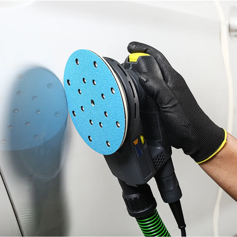 Наш К226 плави филм нуди разне опције за спречавање зачепљења и уклањање прашине. Нудимо више облика отвора за избор, а његов механички дизајн за уклањање прашине, у комбинацији са посебним премазом против зачепљења, постиже врхунске перформансе против зачепљења. Можете одабрати најпогоднији облик отвора бленде да бисте максимално повећали ефикасност уклањања прашине. Мање прашине штити респираторно здравље оператера и чува вас од опасности од прашине. Штавише, његова подлога је потпуно надограђена. Подлога је стабилнија; користили смо модификовану филмску подлогу са дизајном на куки и петљи на задњој страни, обезбеђујући чврсто приањање на брусној плочи. Ово спречава да филм одлепрша или одлепрша током брушења, што га чини посебно погодним за аутоматизоване механичке примене. Коришћење са електричним или пнеуматским алатима додатно ће побољшати резултате. Донгсхенг К226 Плави филм је широко применљив на различите сценарије брушења, укључујући аутомобилско тржиште, бродове за крстарење, 3Ц електронику, дрвени намештај, жад и антиквитете, ауто делове и кит за зидове.